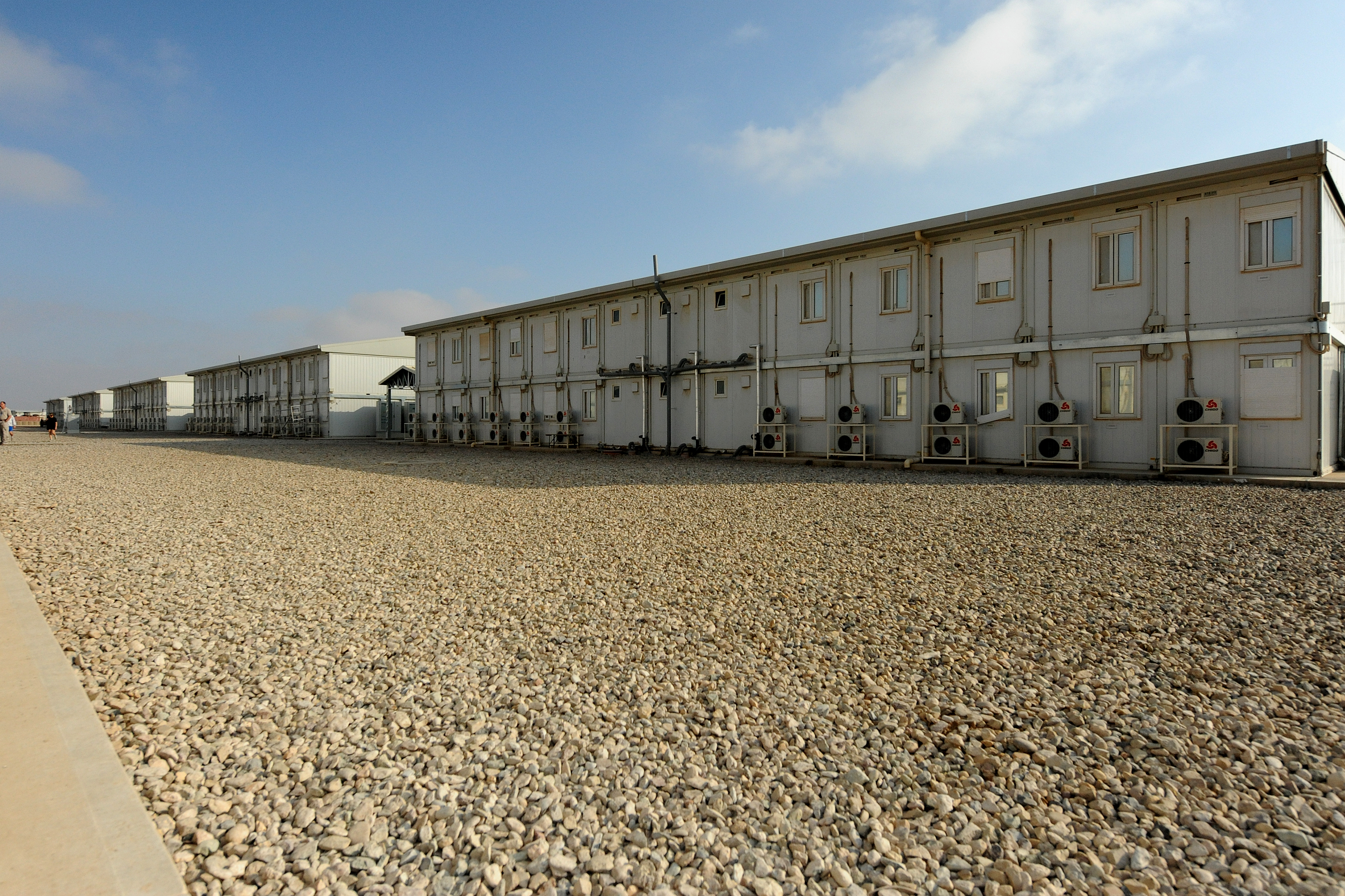 The two tier accommodation blocks at Camp Bastion, Helmand, Afghanistan.